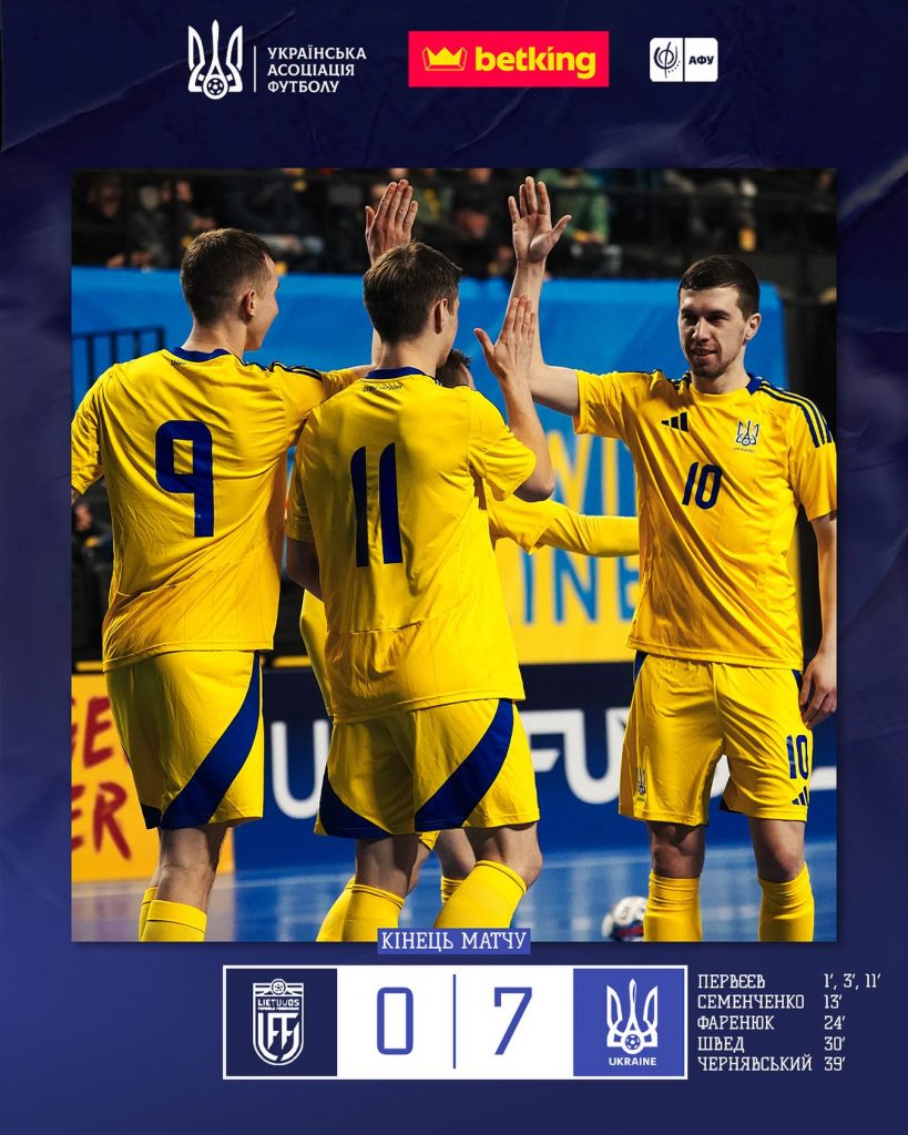 Збірна України здобула впевнену перемогу з рахунком 7:0. Вже в першій половині хет-трик оформив Владислав Первеєв – у другому та третьому голі йому асистували Андрій Мельник та Євгеній Жук.